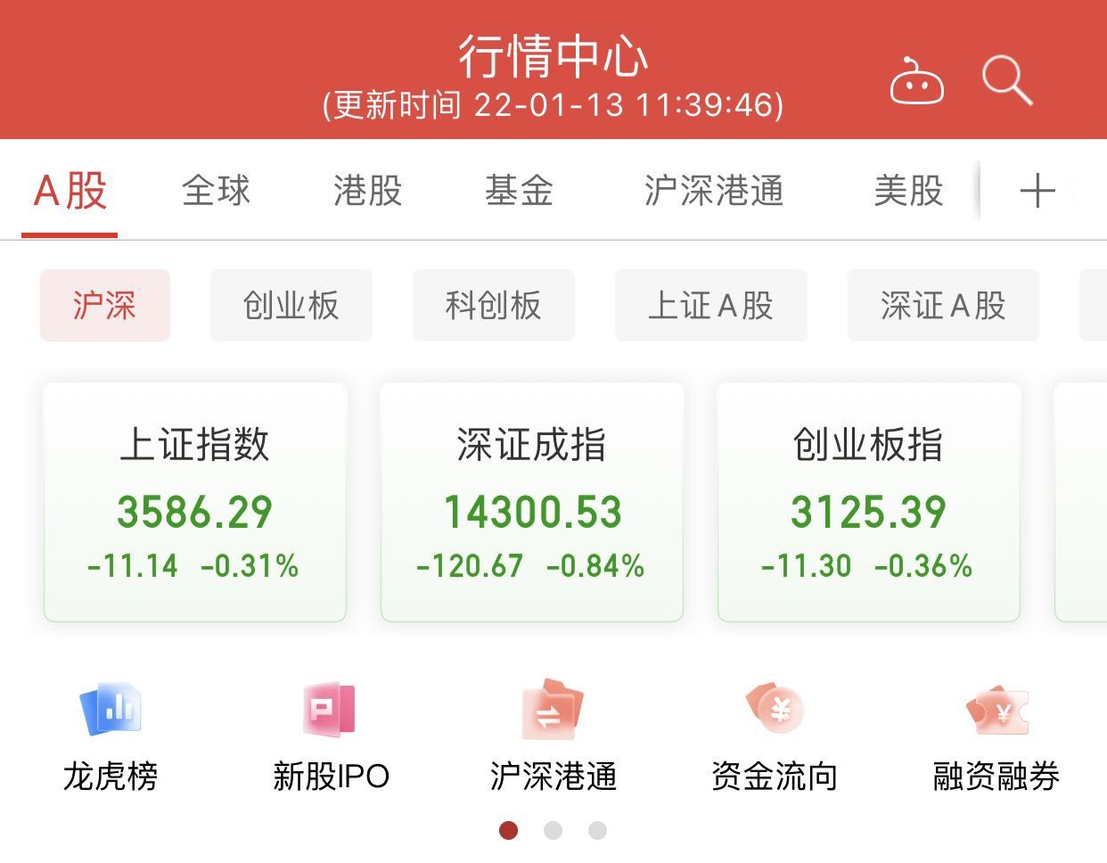 截至午间收盘,沪指跌0.31%,报3586.29点。深证成指跌0.84%,报.53点。创业板指跌0.36%,报3125.39点。